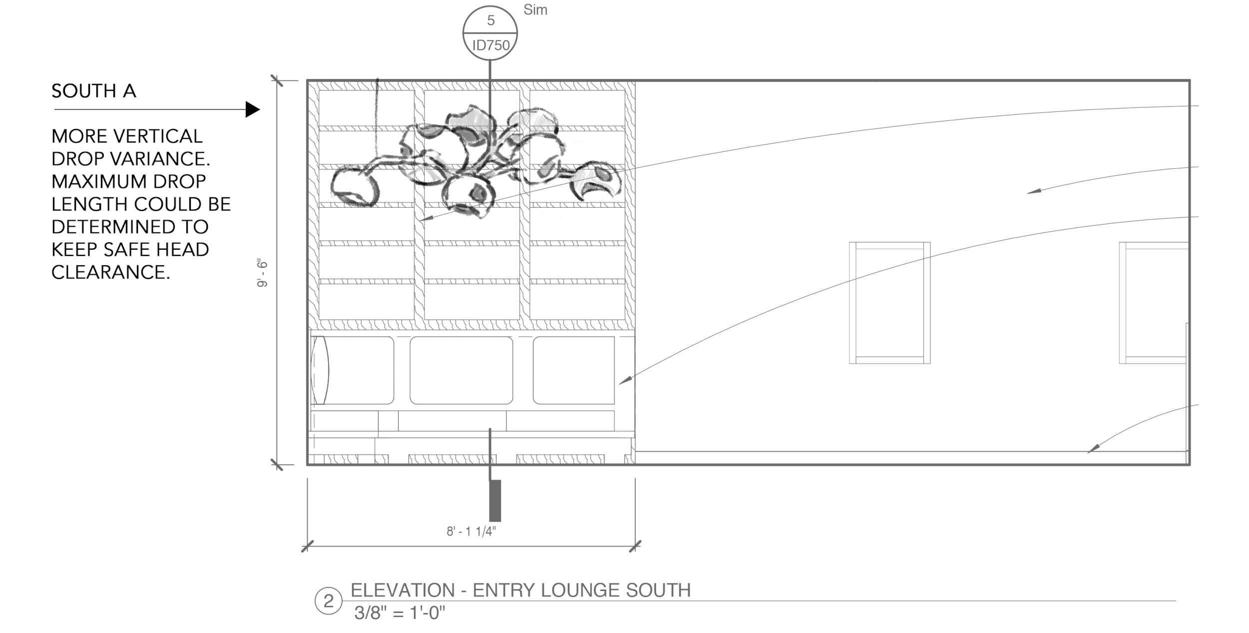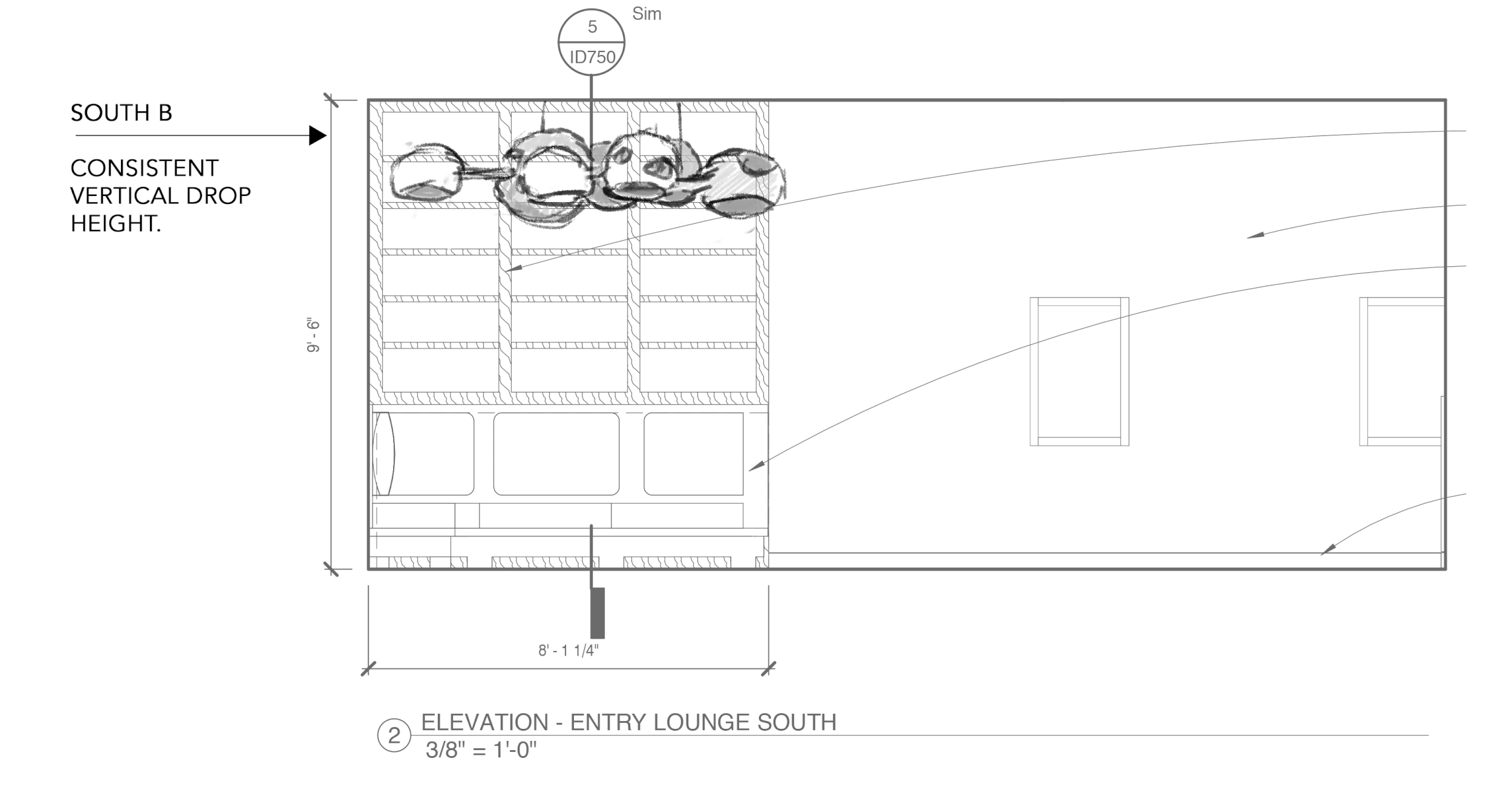 DESIGN, FABRICATION AND INSTALLATION OF TWO LIGHT SCULPTURES (APPROX. 12 FEET BY 8.5 FEET EACH) AND ONE STANDALONE 30” DIAMETER FIXTURE FOR THE “DRIFT” HOTEL LOBBY. IN THE STYLE OF BY MY “ORBITA” AND “GOLB” LIGHT FIXTURES.